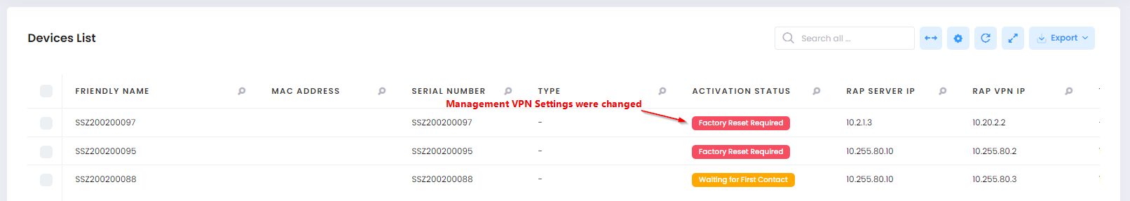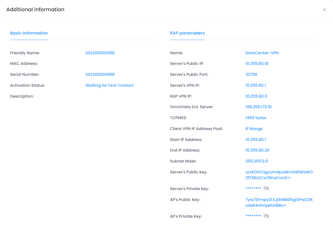 RAP VPN IP - The IP address assigned to the remote AP device from the Client VPN IP Address Pool.