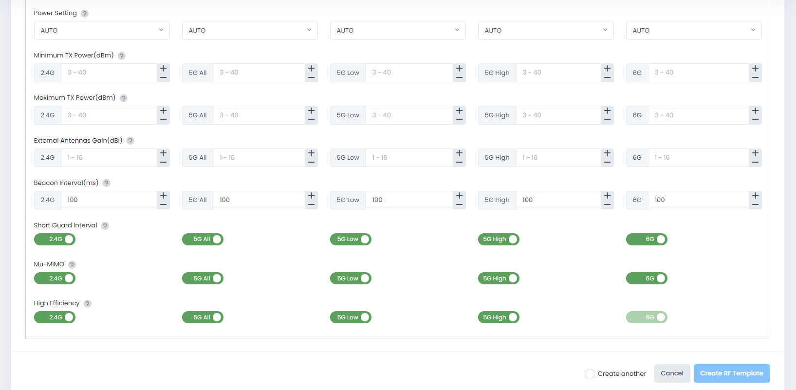5G All - 5G band radio will be activated. It is used to set the full band 5G radio on other AP series.