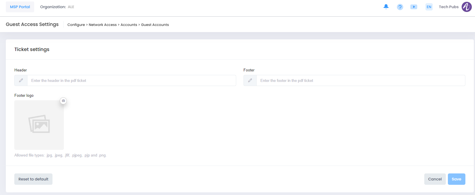 Header - Enter the header to use in the PDF ticket.