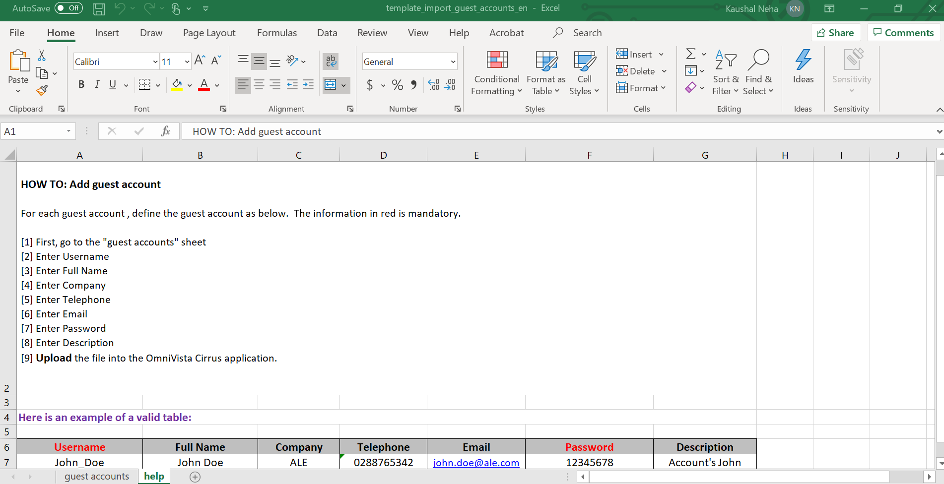 Fill out the template with information for each Guest Account that is to be imported.