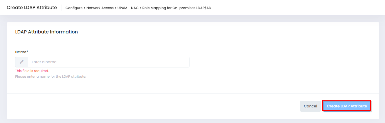 Enter the attribute in the Name field and click on the Create LDAP Attribute.