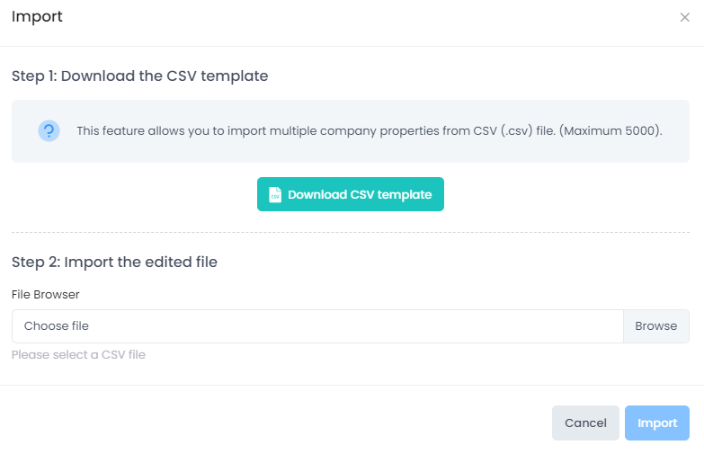 Step 1: Download the CSV template file and add company property information based on the template instructions.