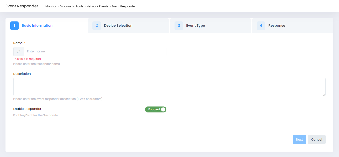 Basic Information - Enter a name, an optional description, and enable/disable the Responder.