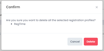 When you select the Registration Profile that you want to delete, the following confirmation prompt appears: